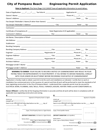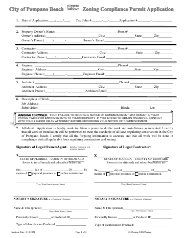 Uniform application used for Building, Electrical, Mechanical, and Plumbing permits in the City of Pompano Beach.