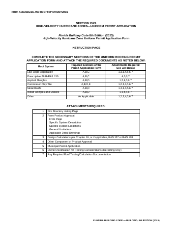 High Velocity Hurricane Zone application for roofs and reroofs — the de facto roofing permit for South Florida wind zones.